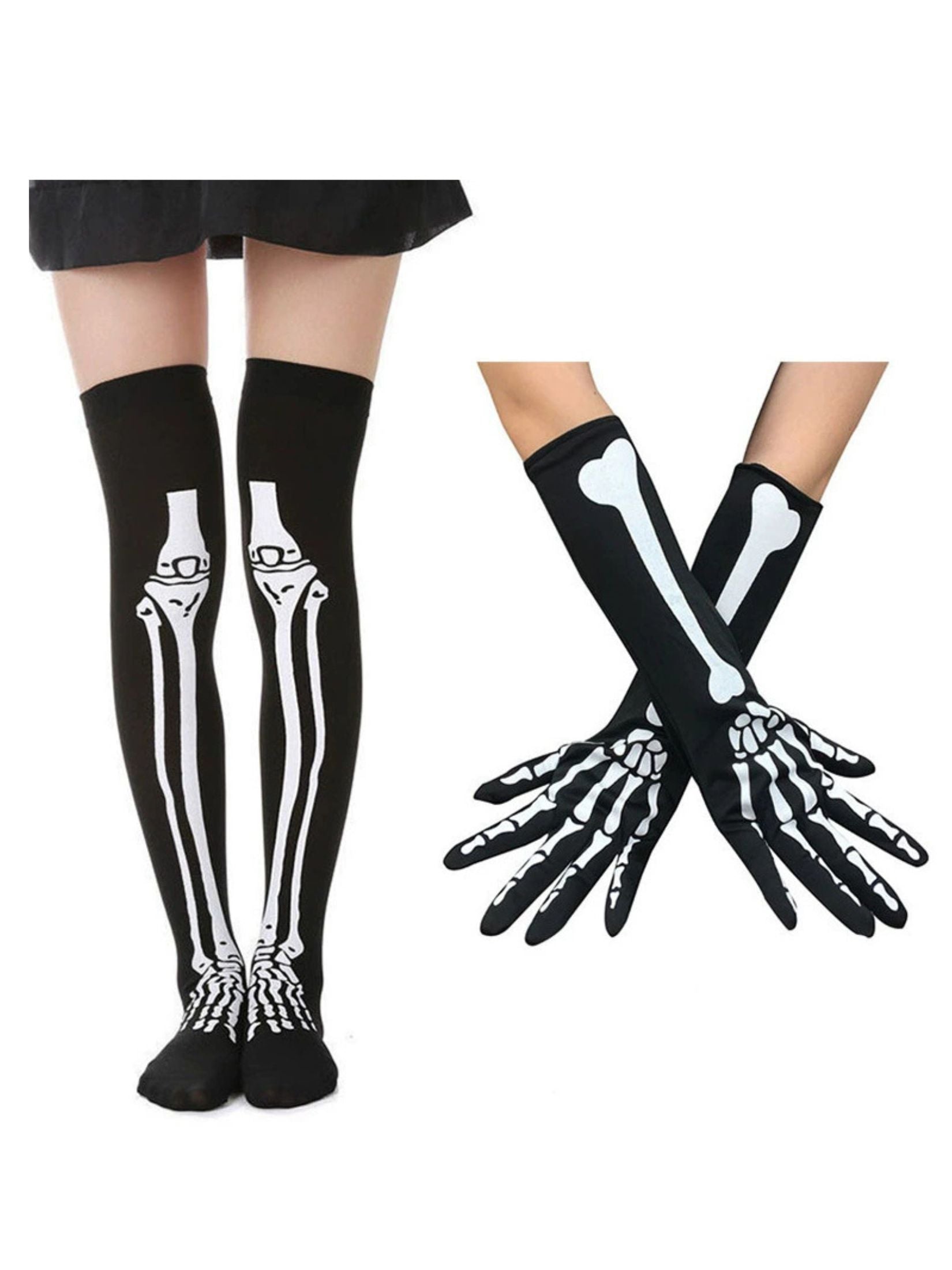 Halloween Skeleton Thigh High Socks & Gloves Set