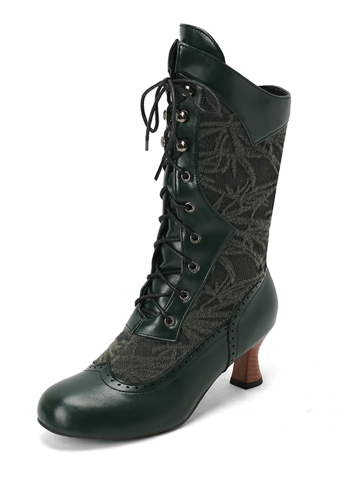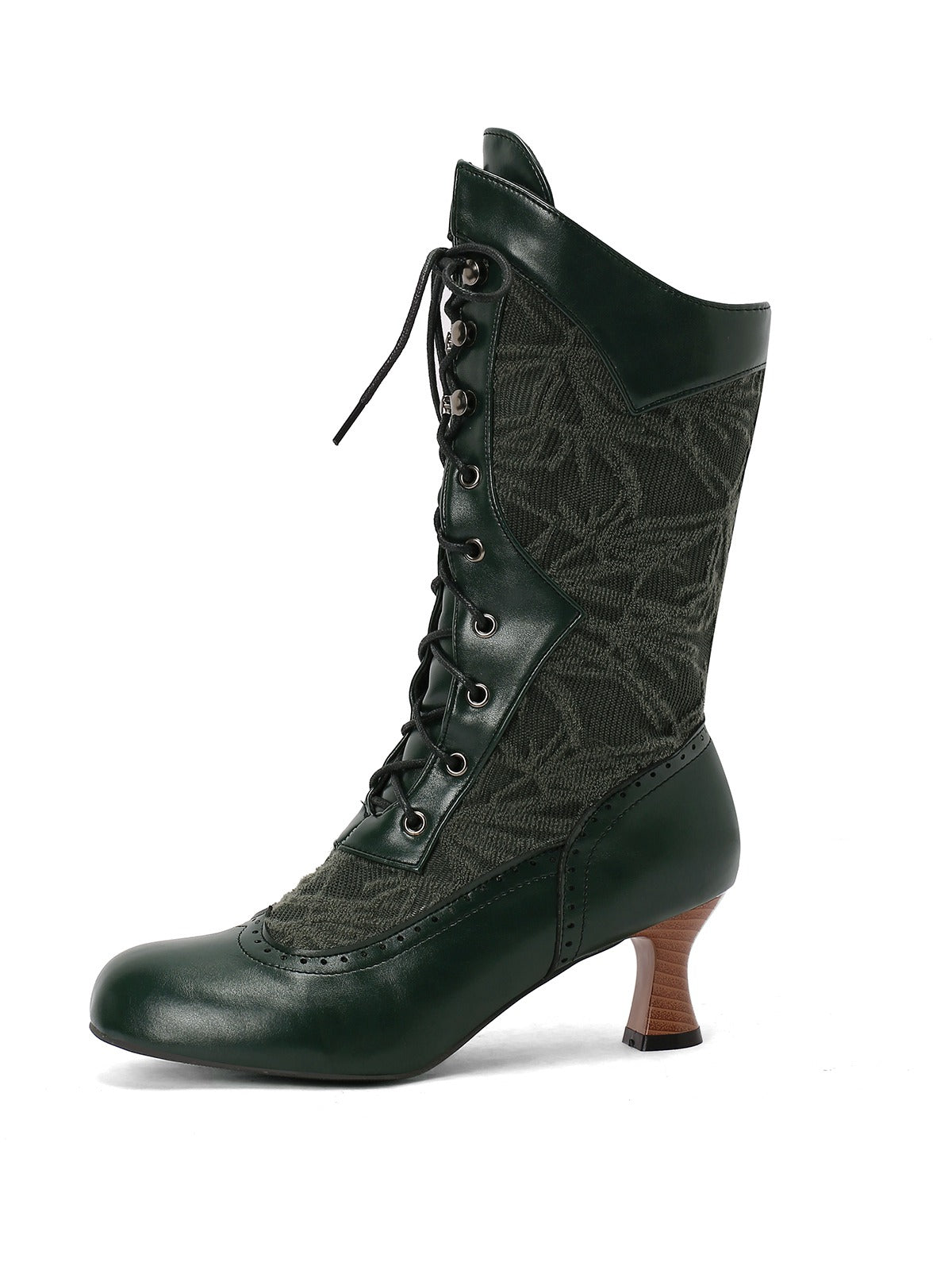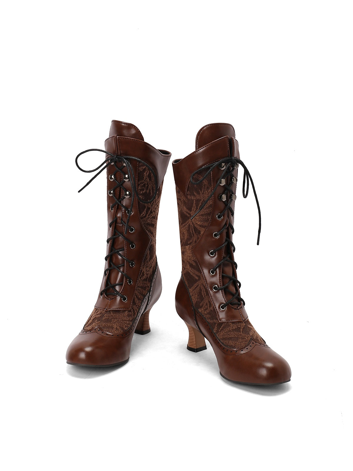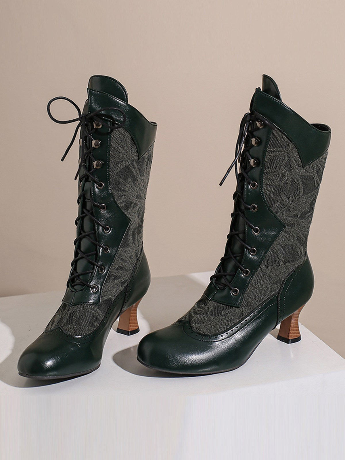 Lace Patchwork Lace-Up Calf-High Boots