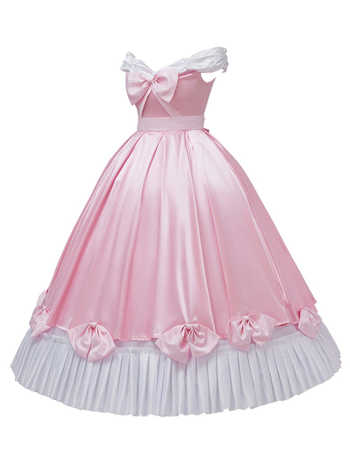 Pink 1950s Off-Shoulder Pleated Satin Bow Princess Dress