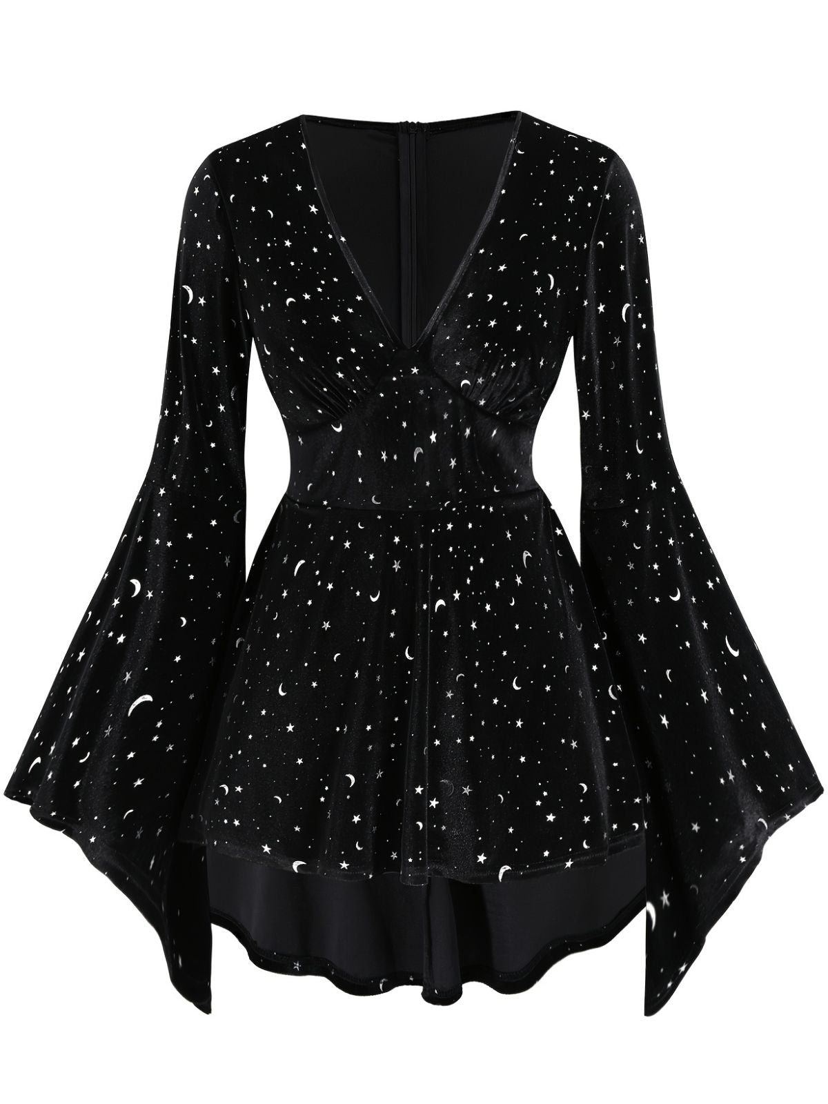 [Plus Size] Black 1960s Star V-Neck Velvet Dress