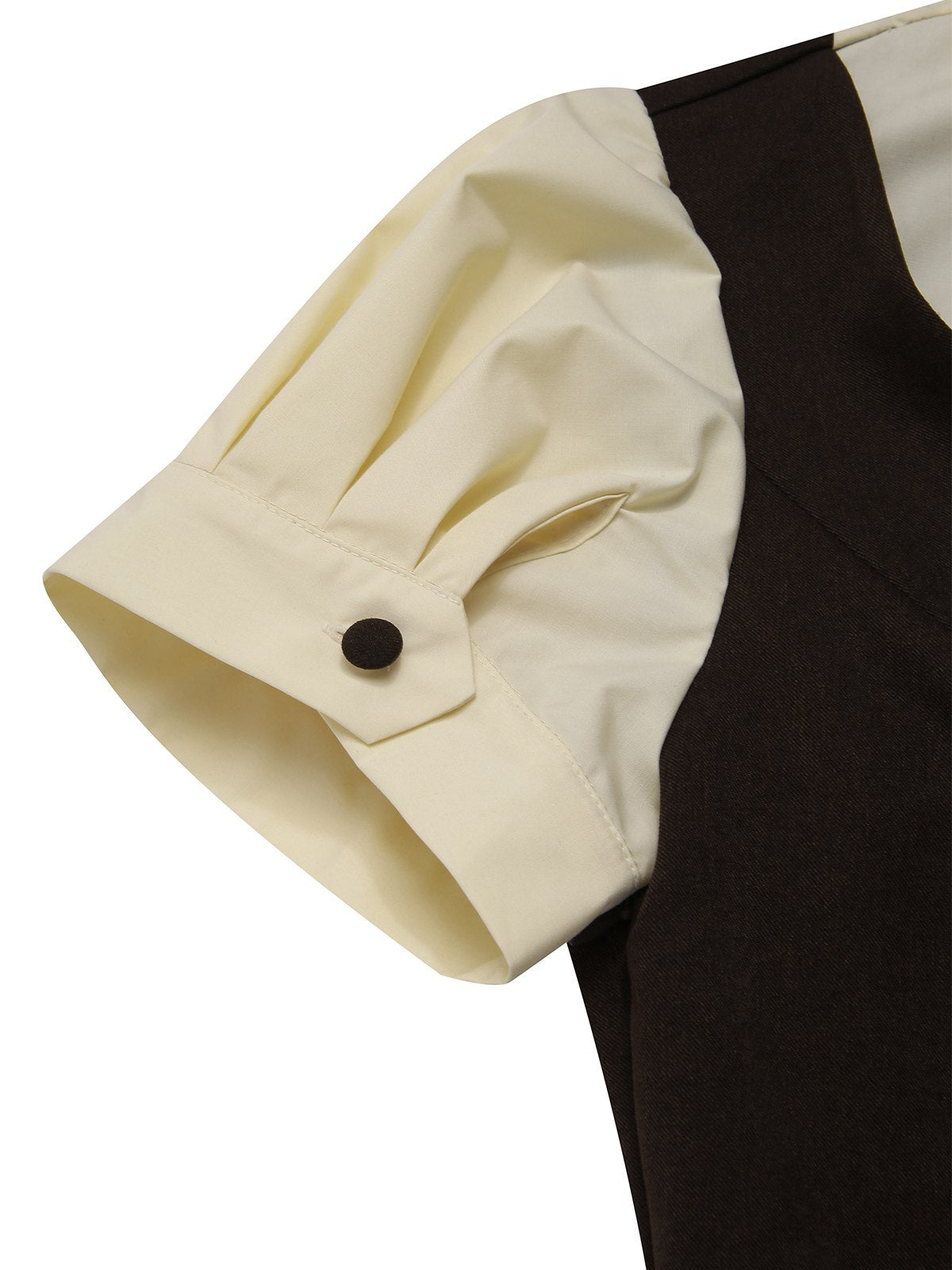 [Pre-Sale] Brown 1930s Faux 3PCS Bow Plaid Jumpsuit