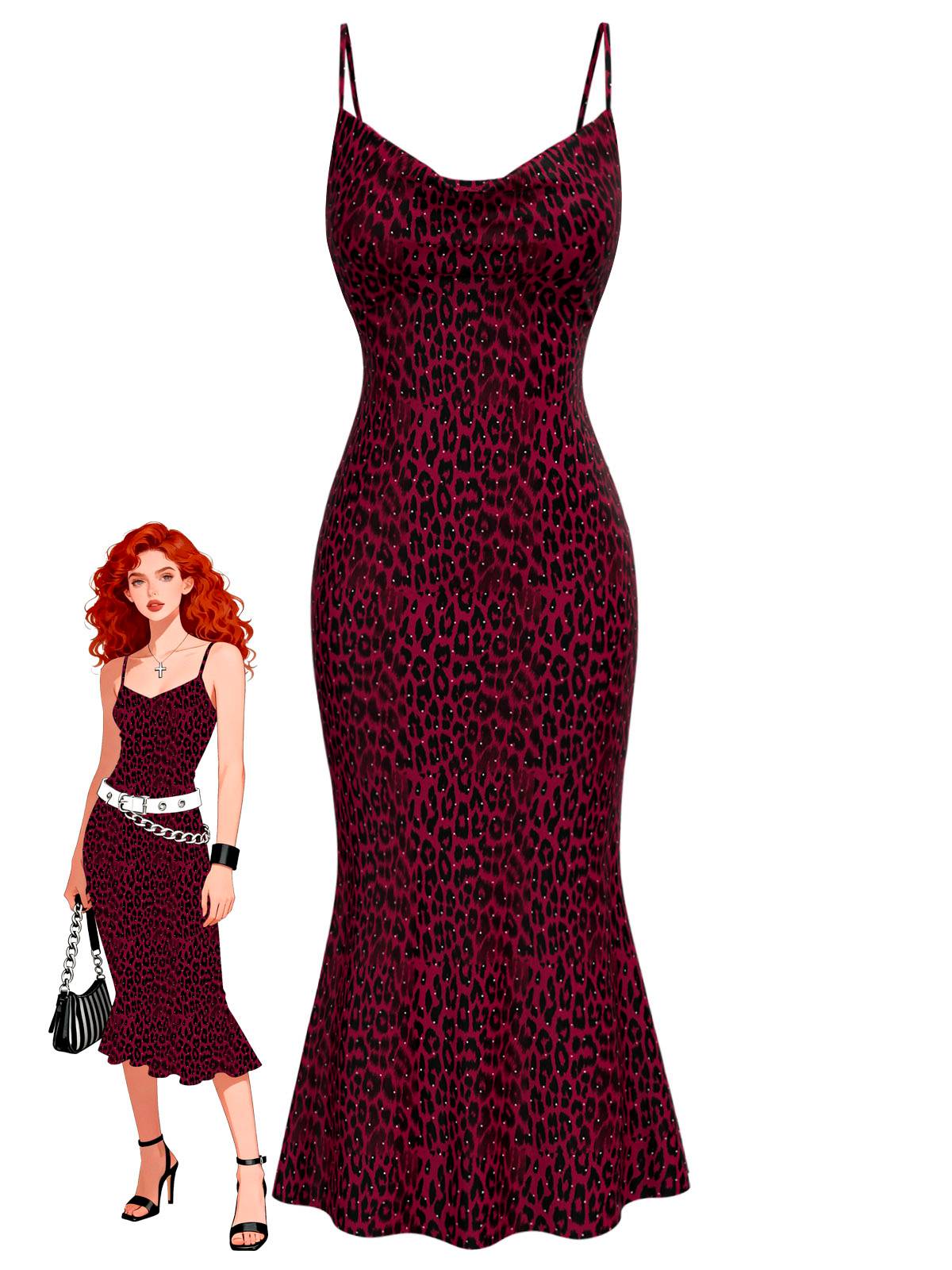 [Pre-Sale] Red 1930s Leopard Spaghetti Strap Fishtail Dress