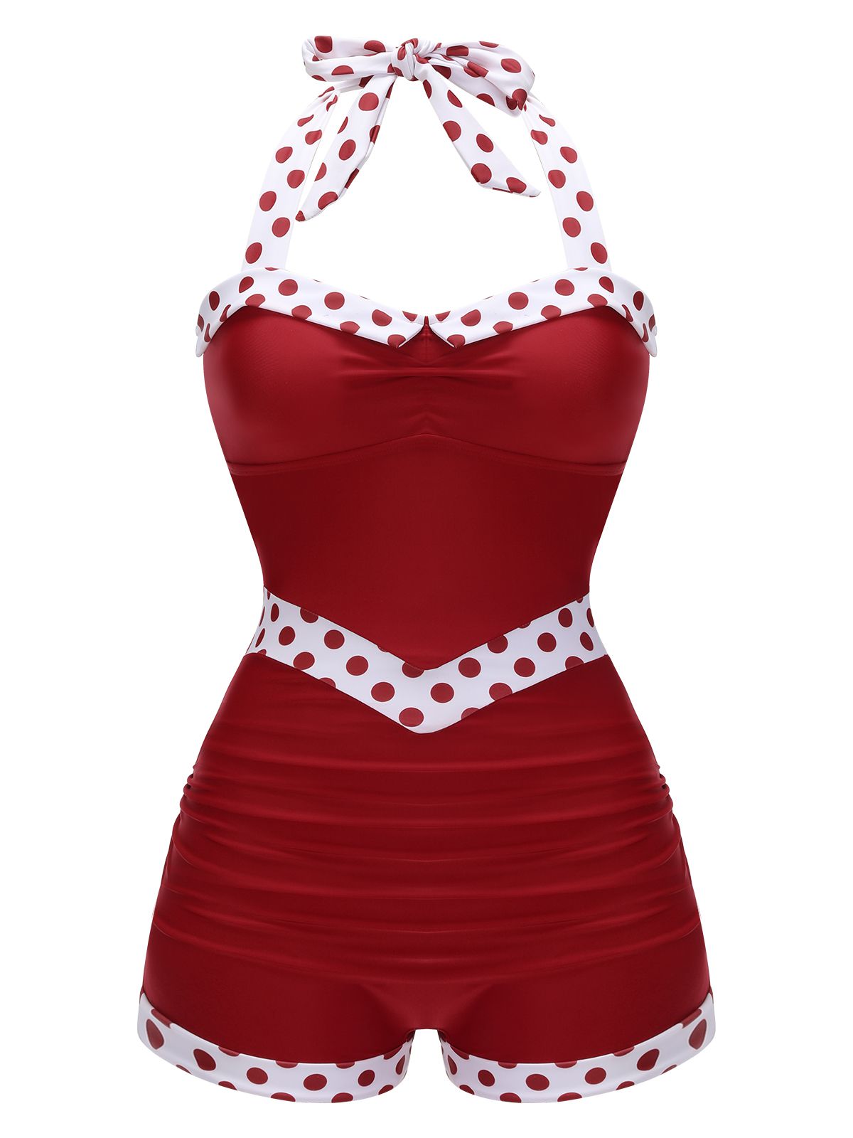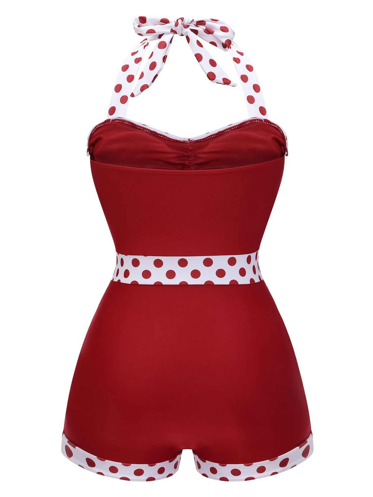 Red 1940s Halter Patchwork One-piece Swimsuit