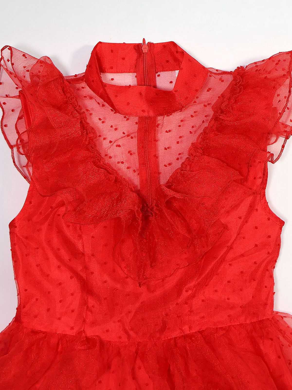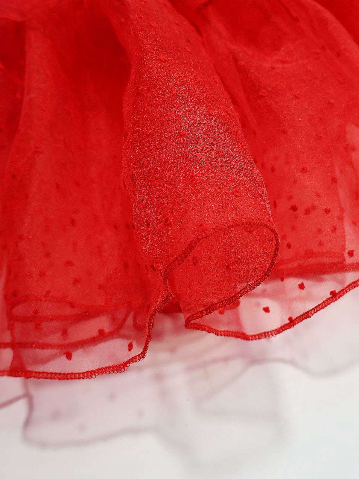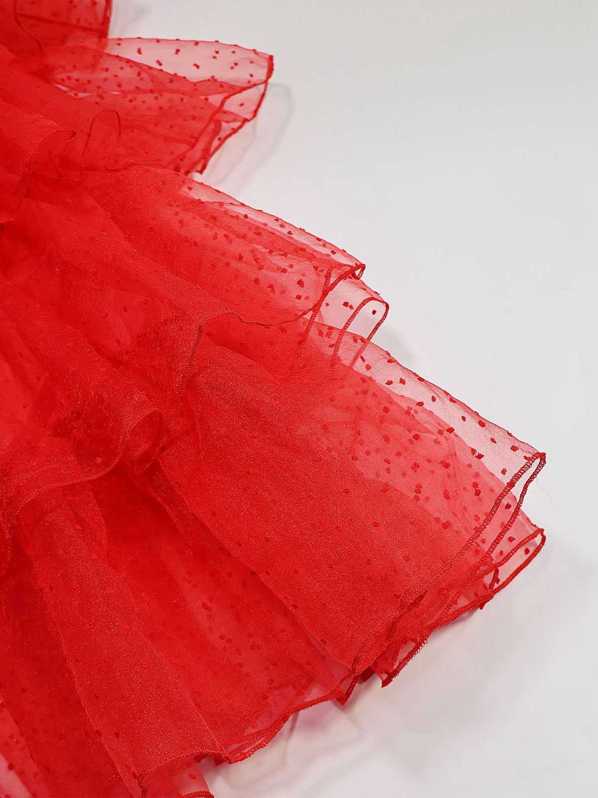 Embrace the mysterious allure of autumn with this layered red tulle dress. Perfect for Halloween festivities or gothic-inspired fall events, its ruffled tiers and belted waist create a dramatic silhouette. This dress effortlessly blends dark romance with a modern edge, making it the standout piece for the season’s enchanting atmosphere.