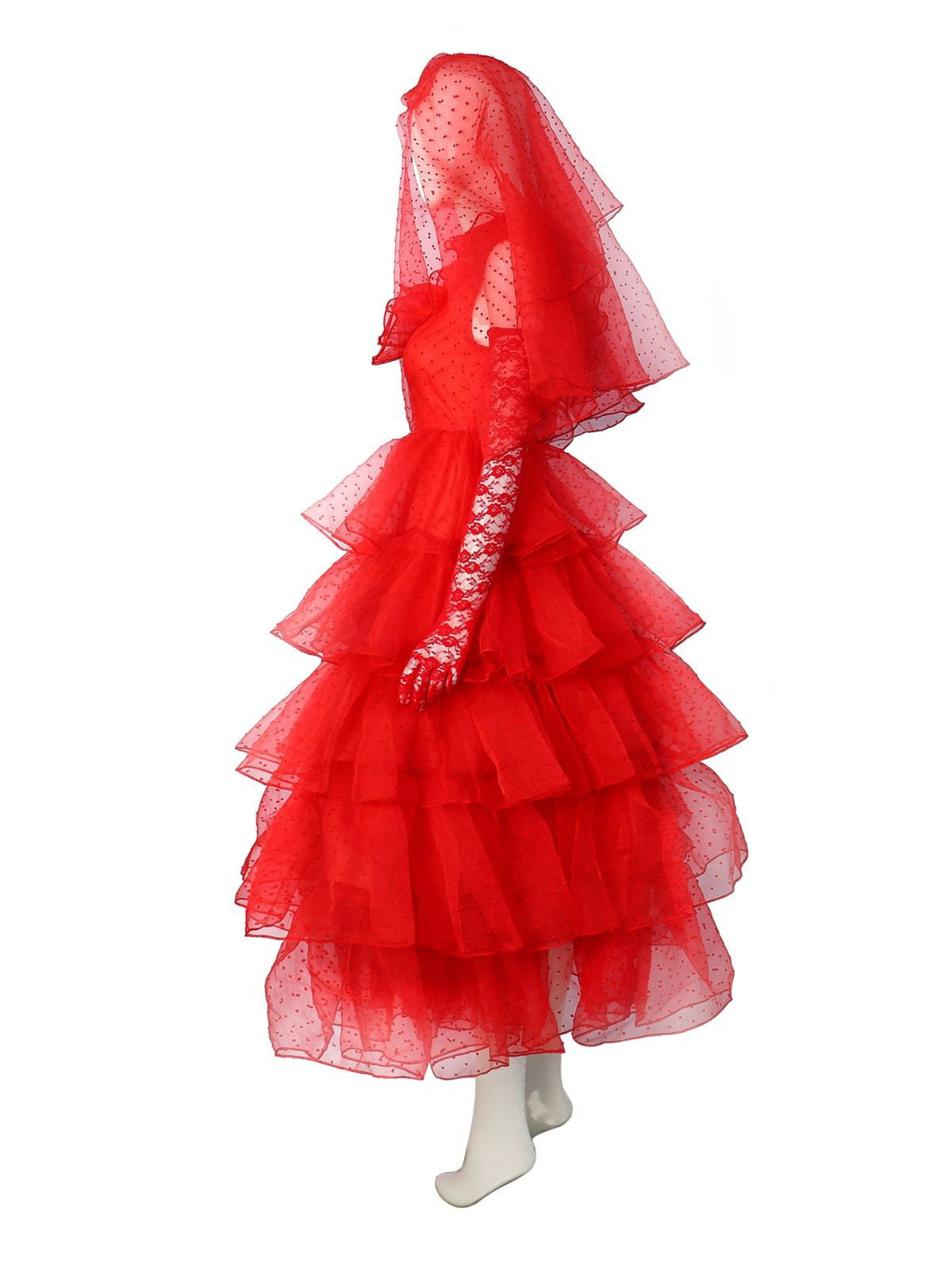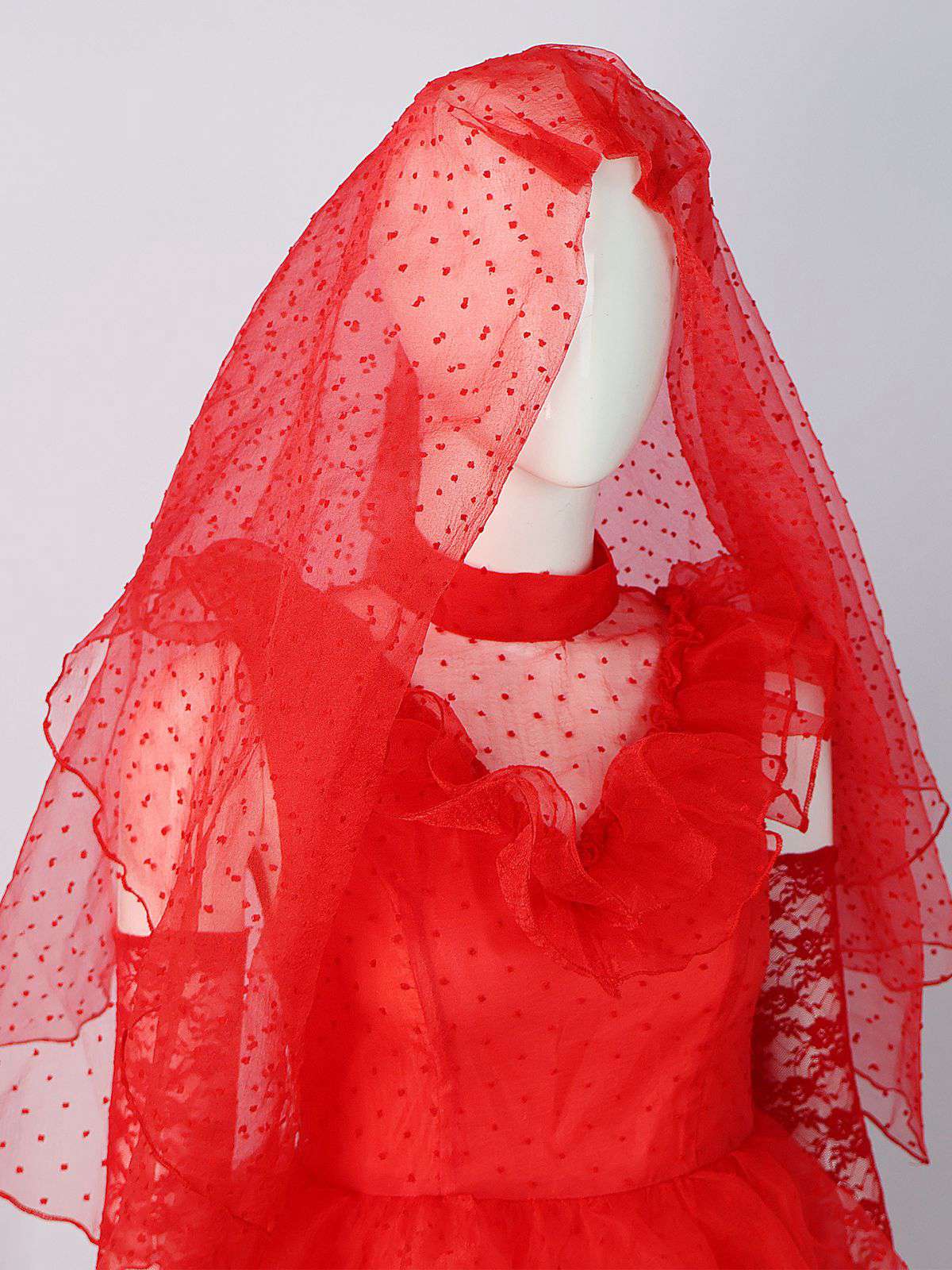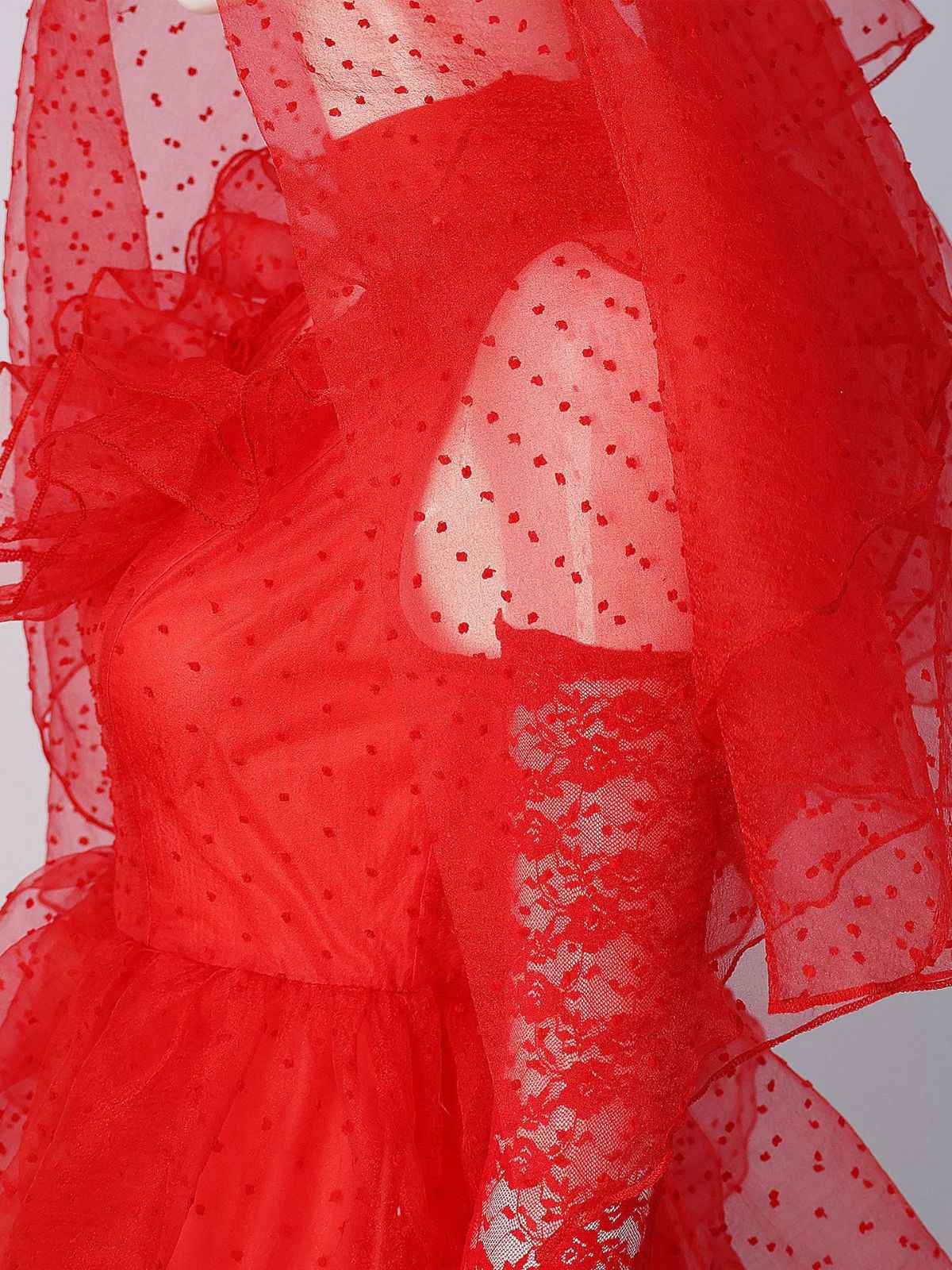 Embrace the mysterious allure of autumn with this layered red tulle dress. Perfect for Halloween festivities or gothic-inspired fall events, its ruffled tiers and belted waist create a dramatic silhouette. This dress effortlessly blends dark romance with a modern edge, making it the standout piece for the season’s enchanting atmosphere.