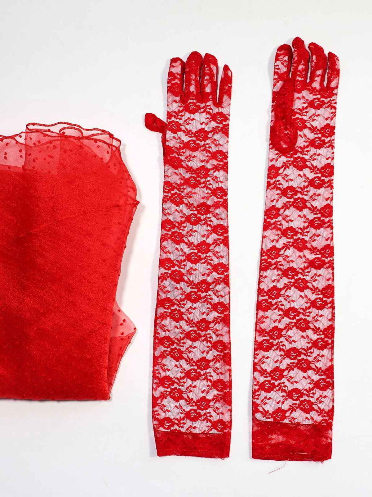 Package Content: 1 x Women's Dress, 1 Pair x Gloves, 1 x Veil