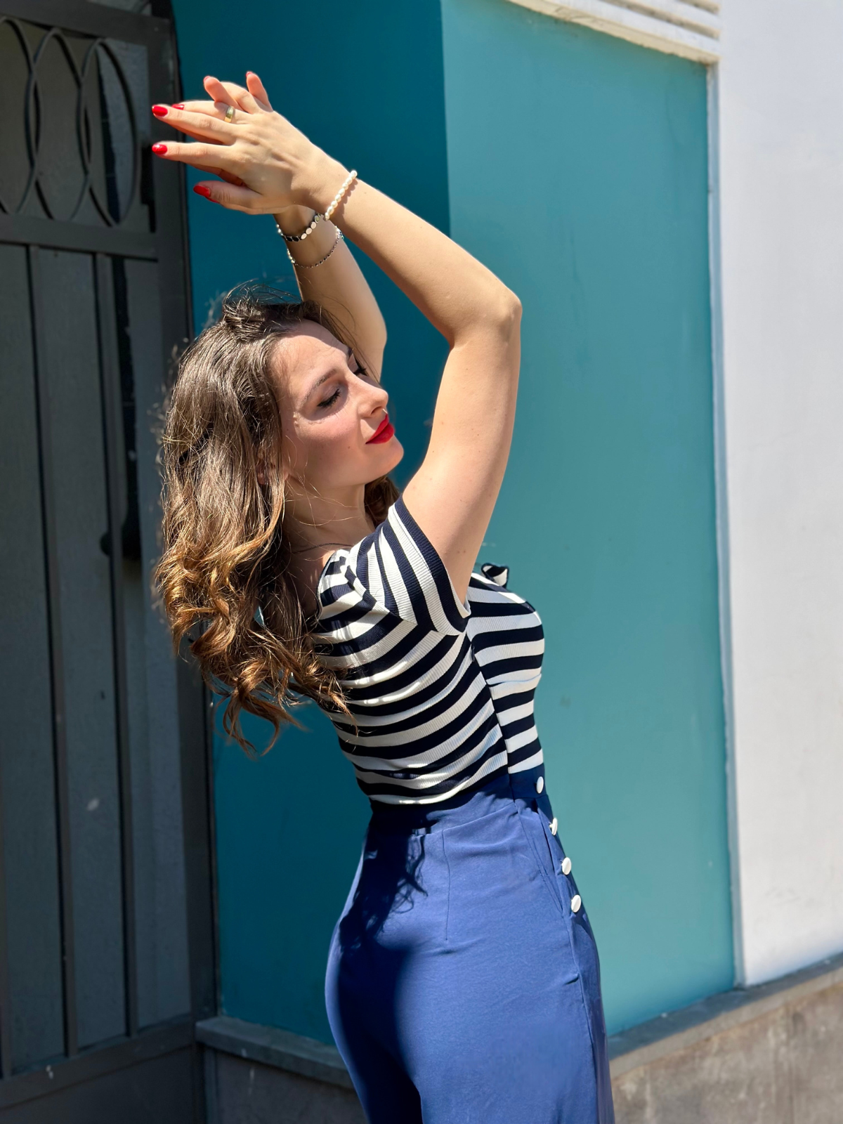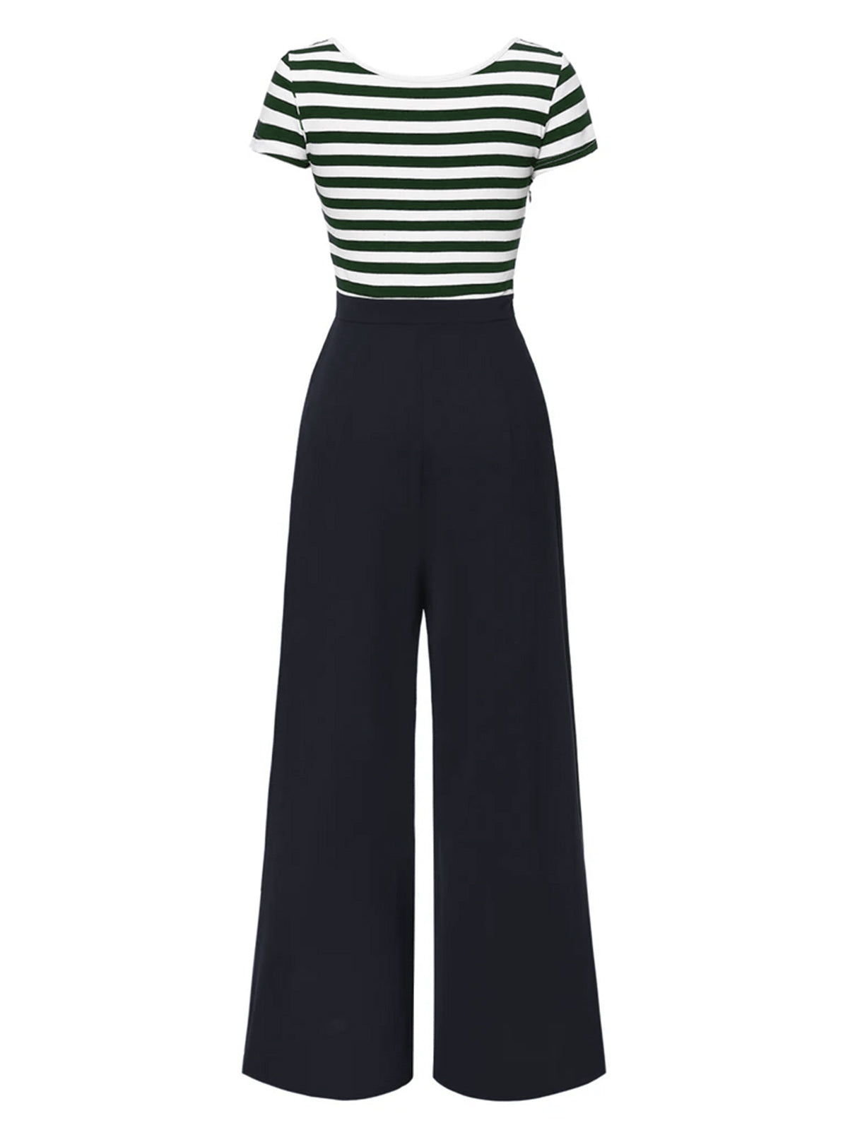 Red 1950s Hollow Bow Stripe Patchwork Jumpsuit