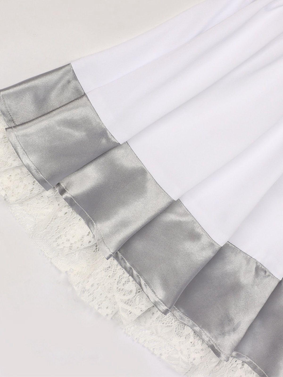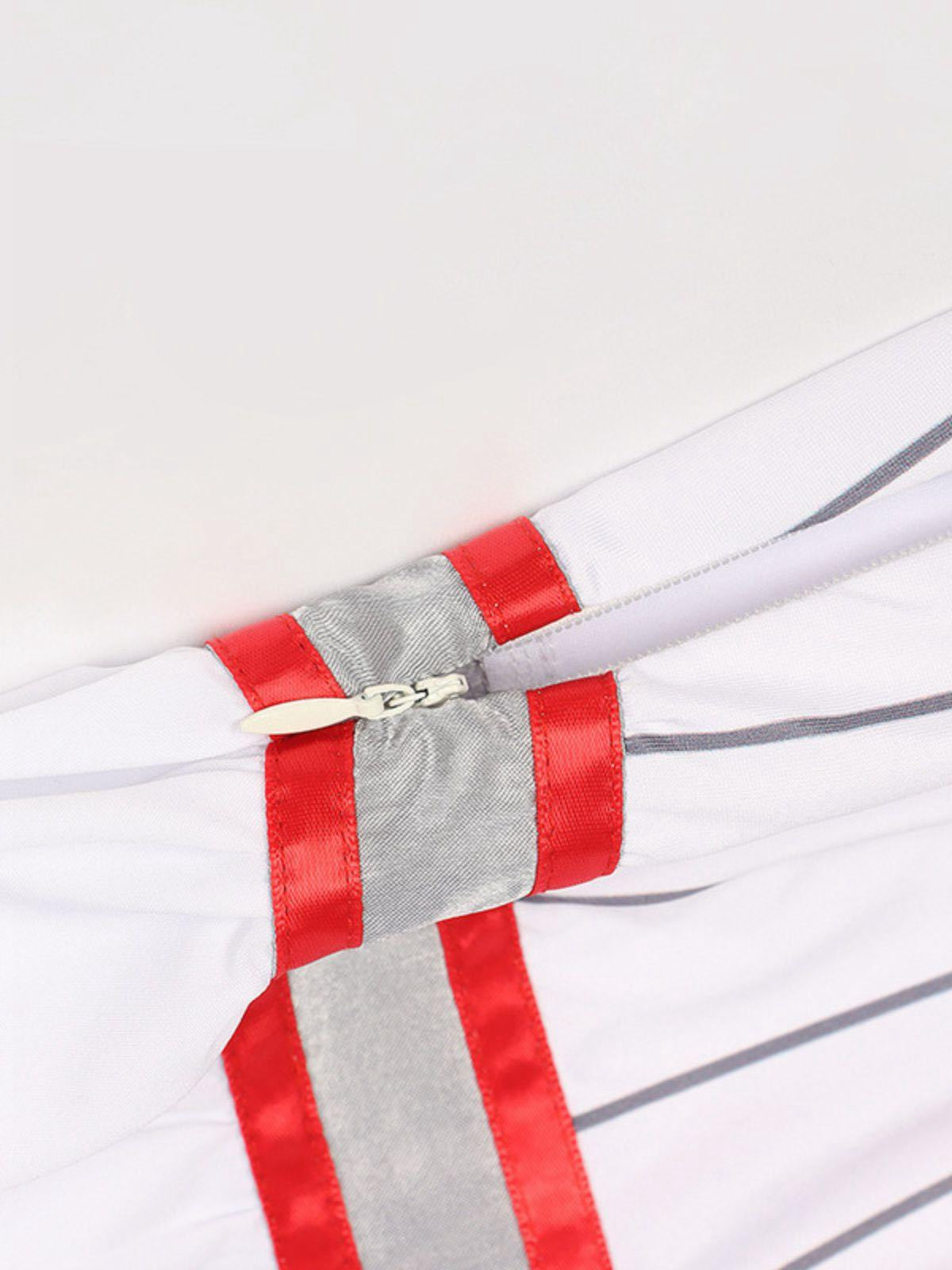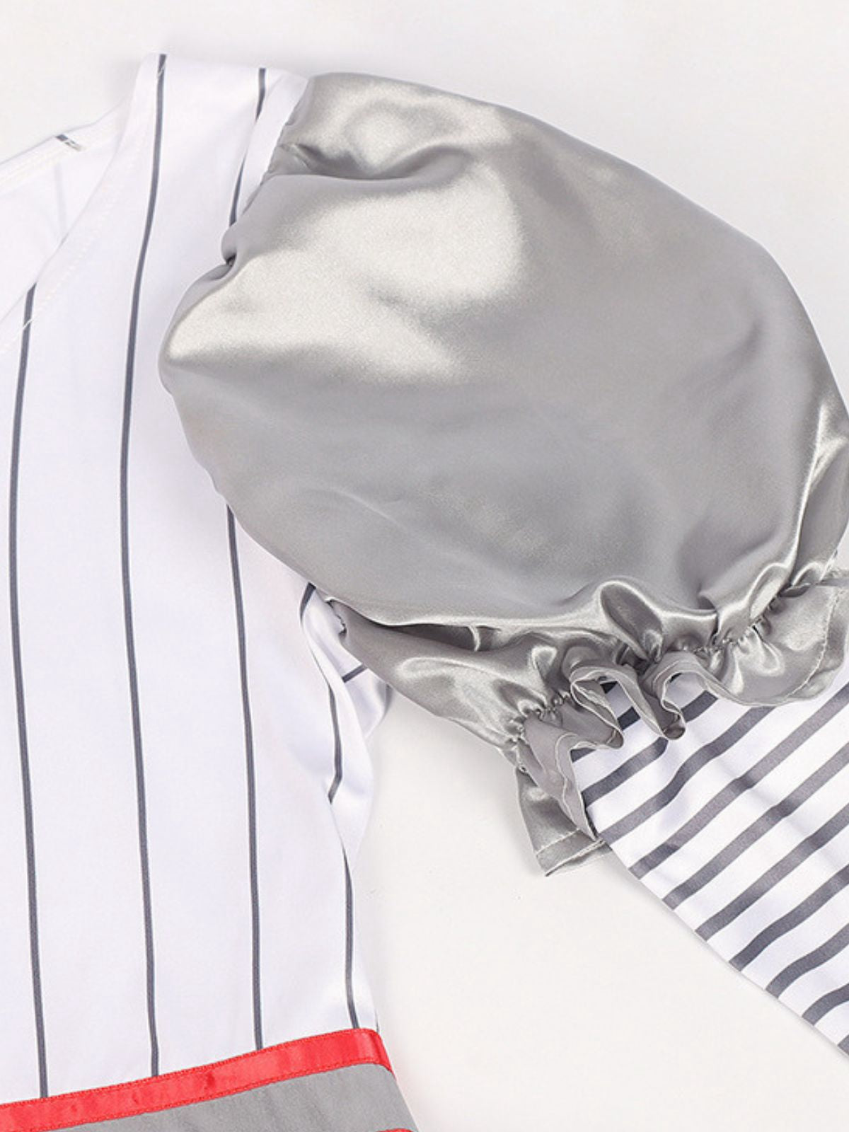 Silver 1960s Halloween IT Pennywise Striped Puff Sleeve Puffy Dress