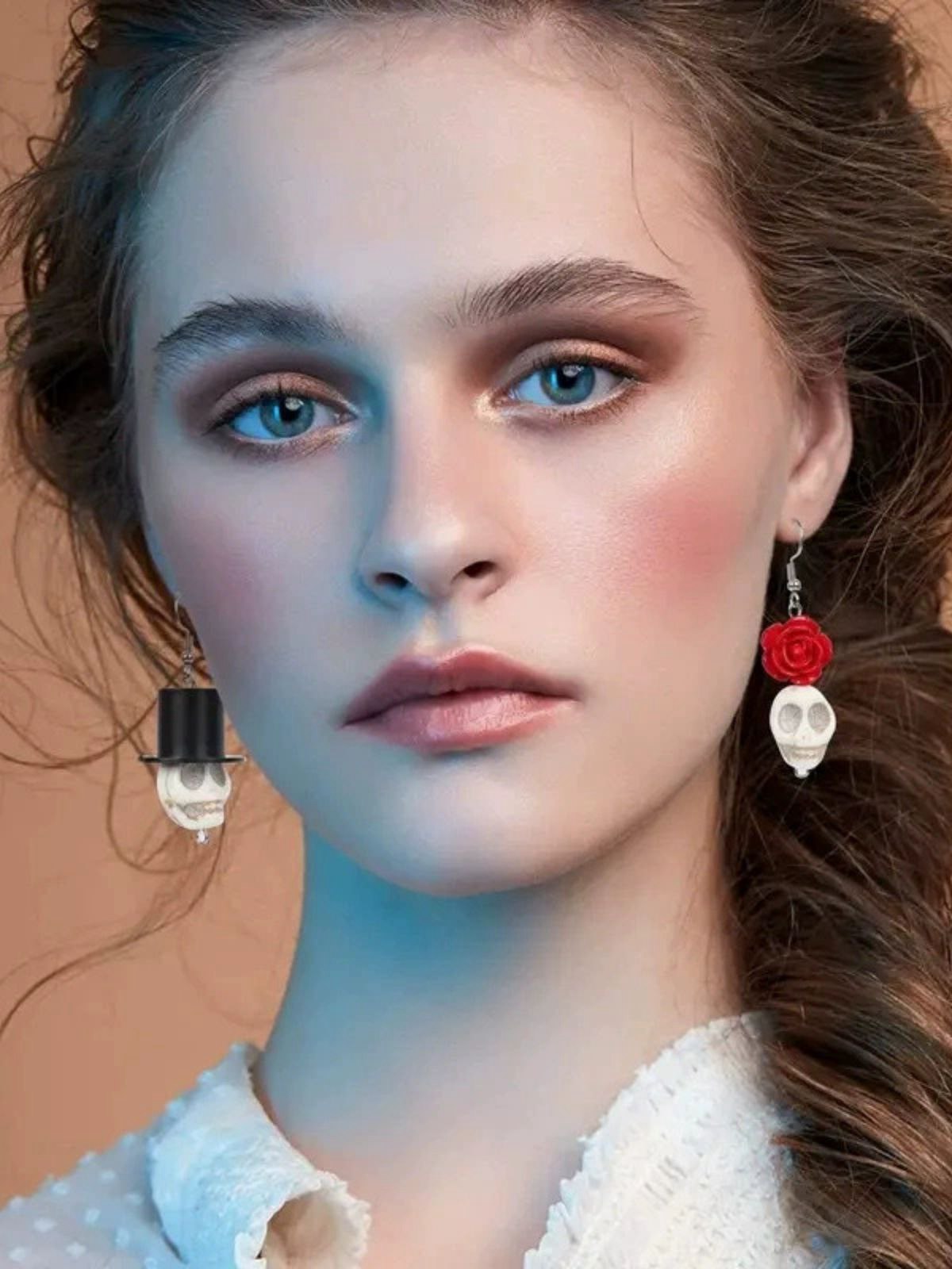 Vintage Skull Rose Halloween Earrings
