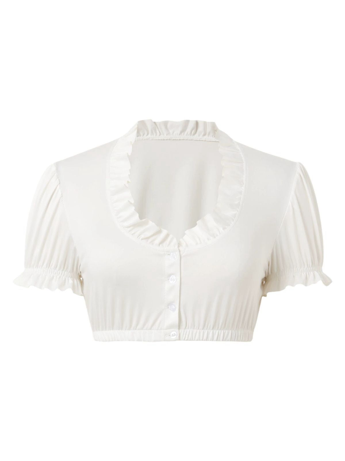 White 1950s Solid Ruched Square Neck Puff Crop Blouse