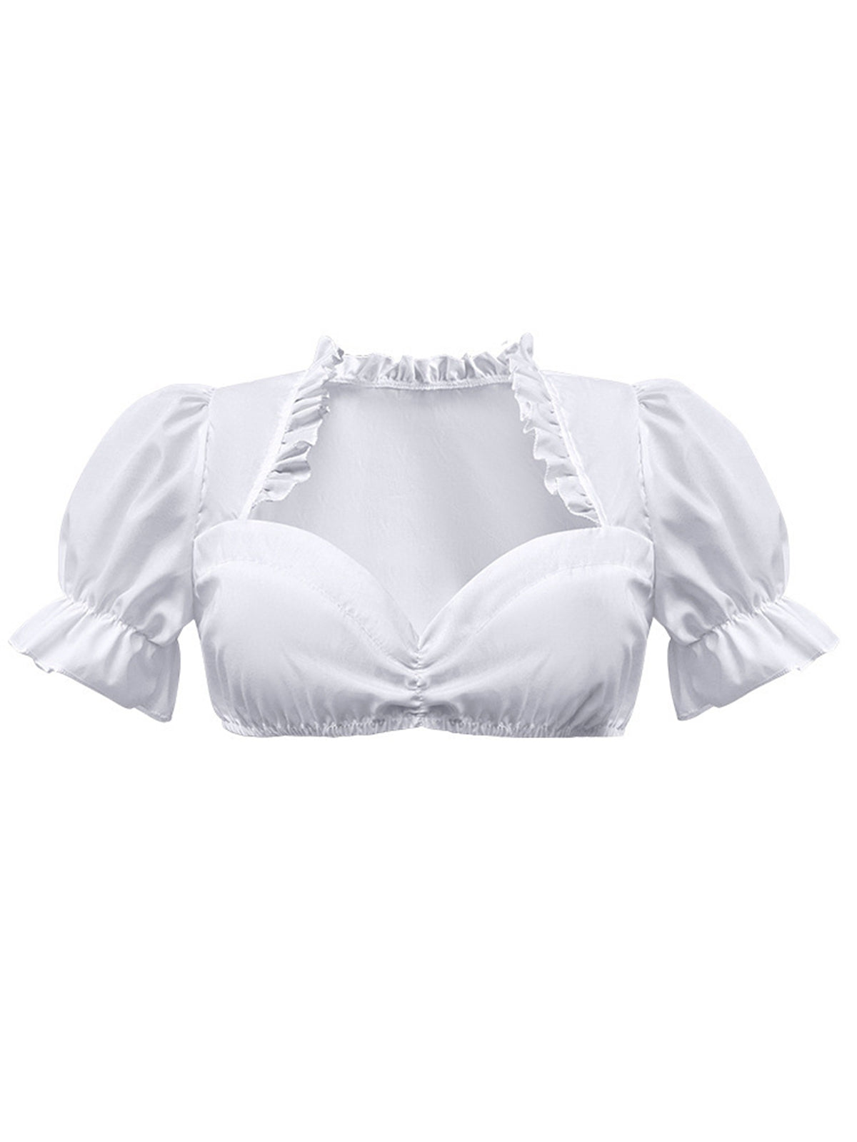 White 1950s Solid Sweetheart Neck Puff Sleeve Crop Top