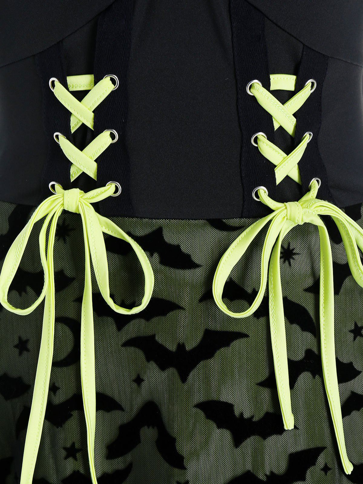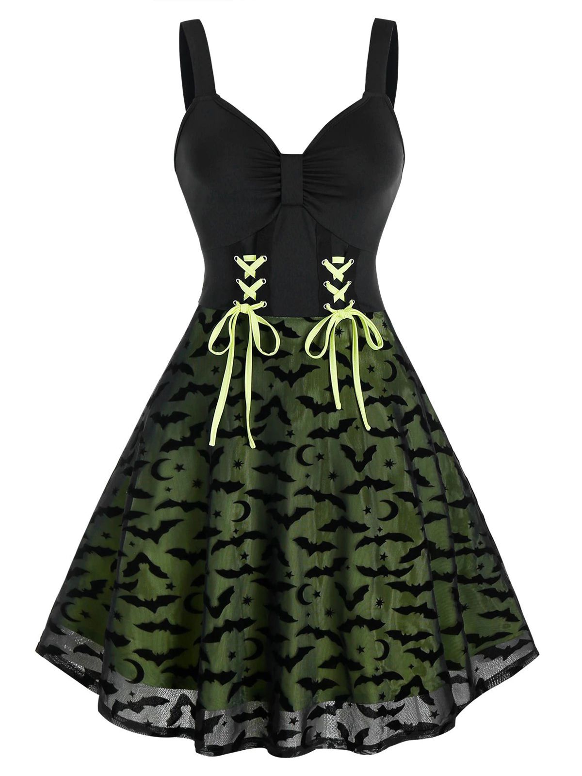 An adventurous infused stunner from Retro Stage! A patchwork dress boasts darted seaming that ends at the bust where a fluid skirt billows past knee length in your feminine figure. A sure conversation starter, the adorable Halloween dress is utterly unique and entirely kitsch!