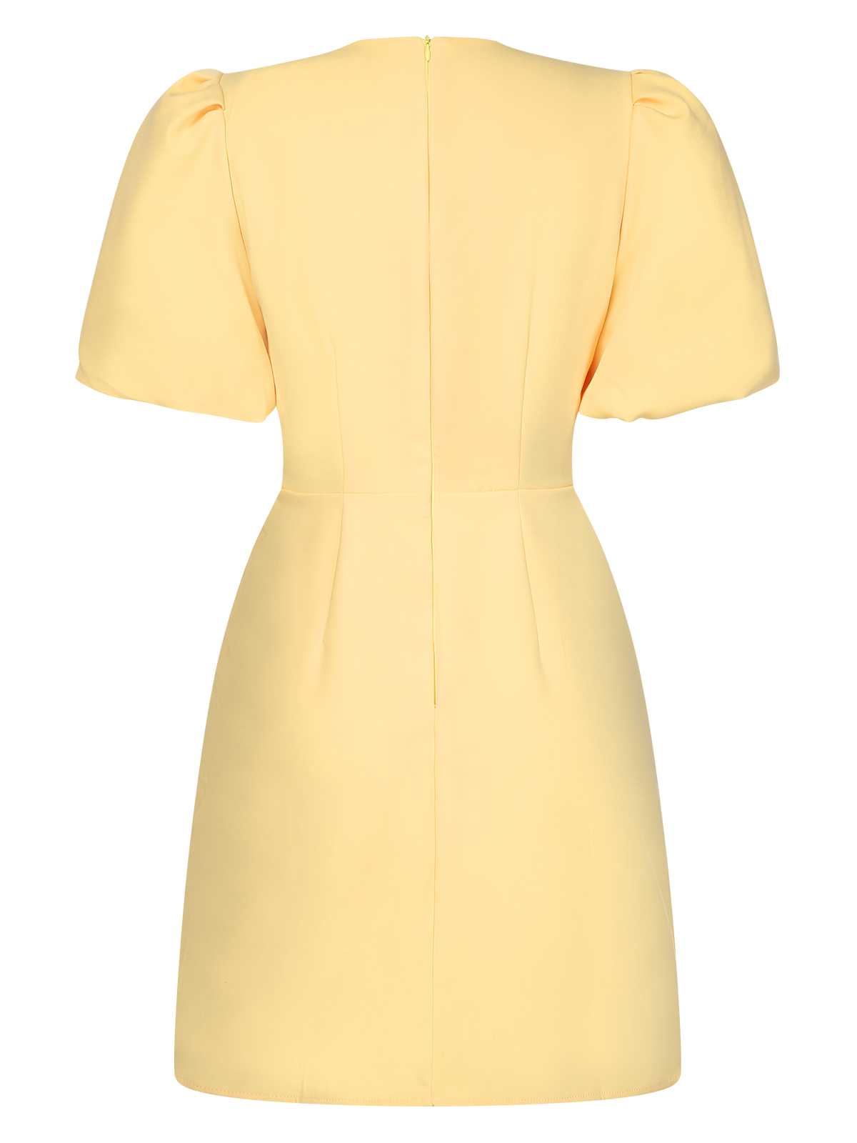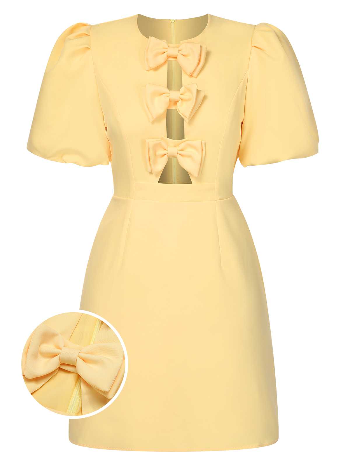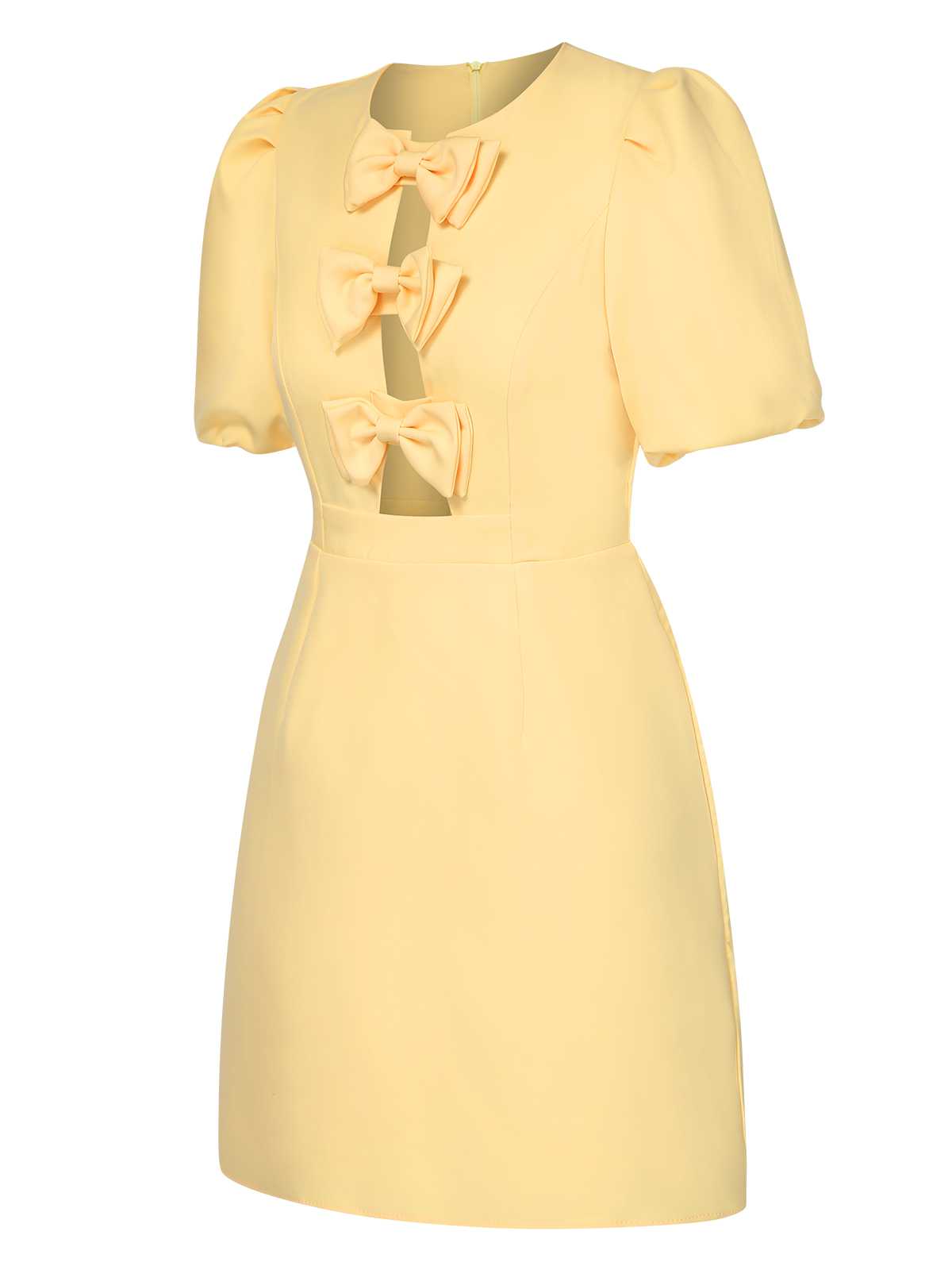 Yellow 1960s Bow Puff Sleeve Solid Dress