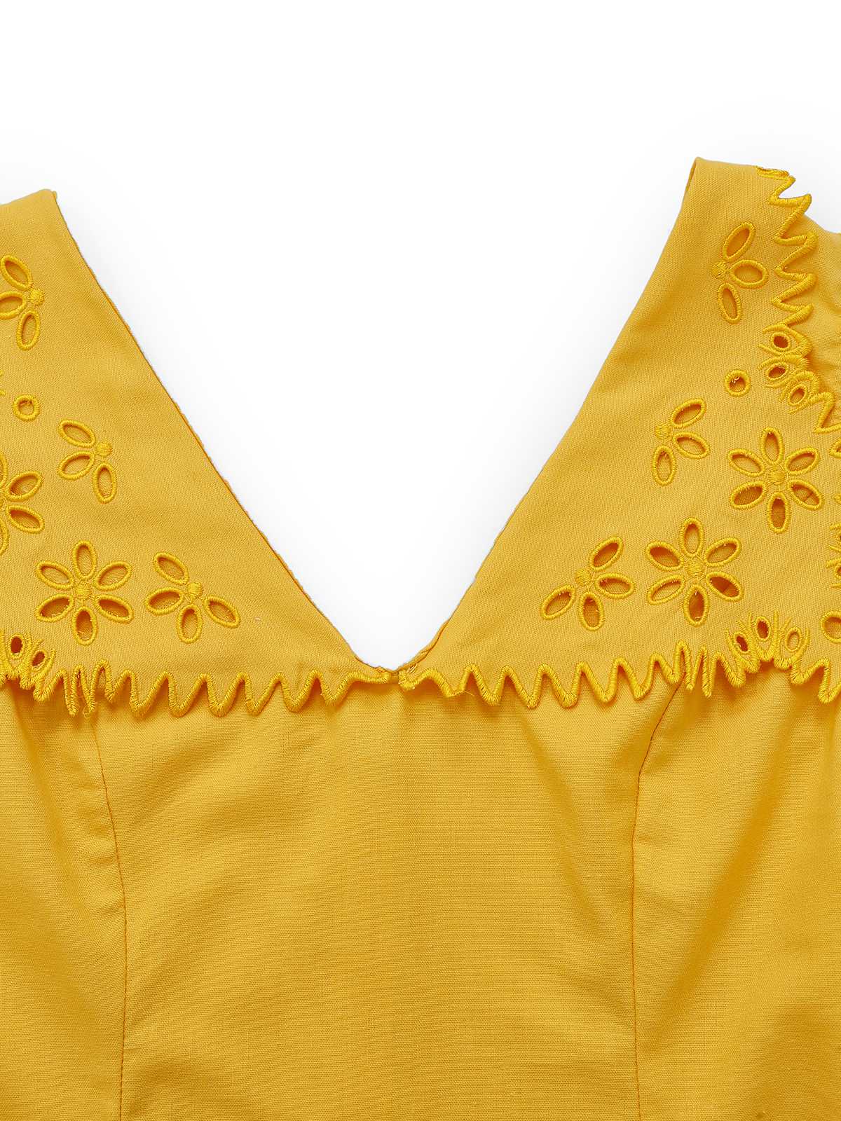 Yellow 1960s Cutout Floral Sleeveless Blouse